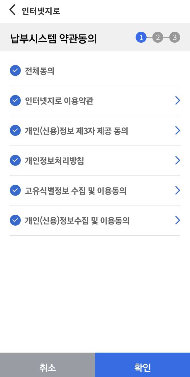 본인이 납부할 내역과 같은지 확인하고 납부를 선택합니다.