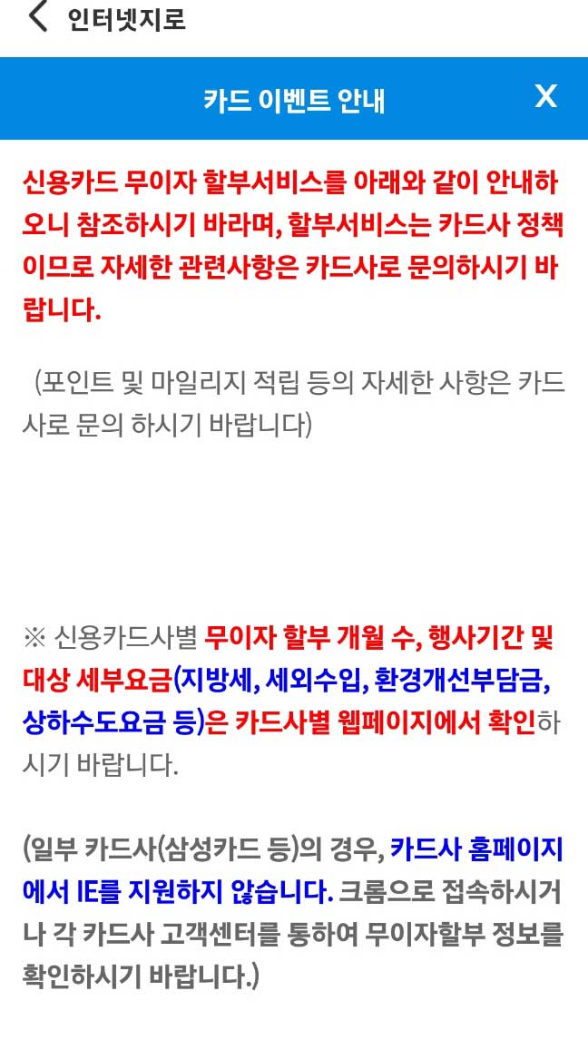 납부하시는 카드사의 홈페이지에 접속하셔서 무이자행사나 이벤트를 확인하세요.